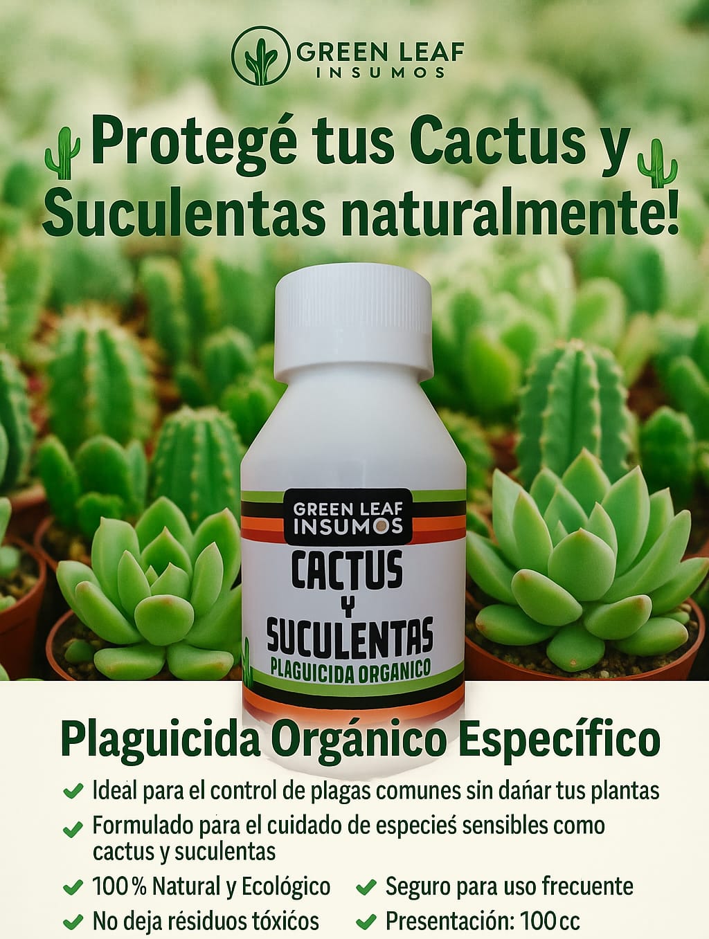PLAGUICIDA ORGANICO CACTUS Y SUCULENTAS 100CC GREEN LEAF