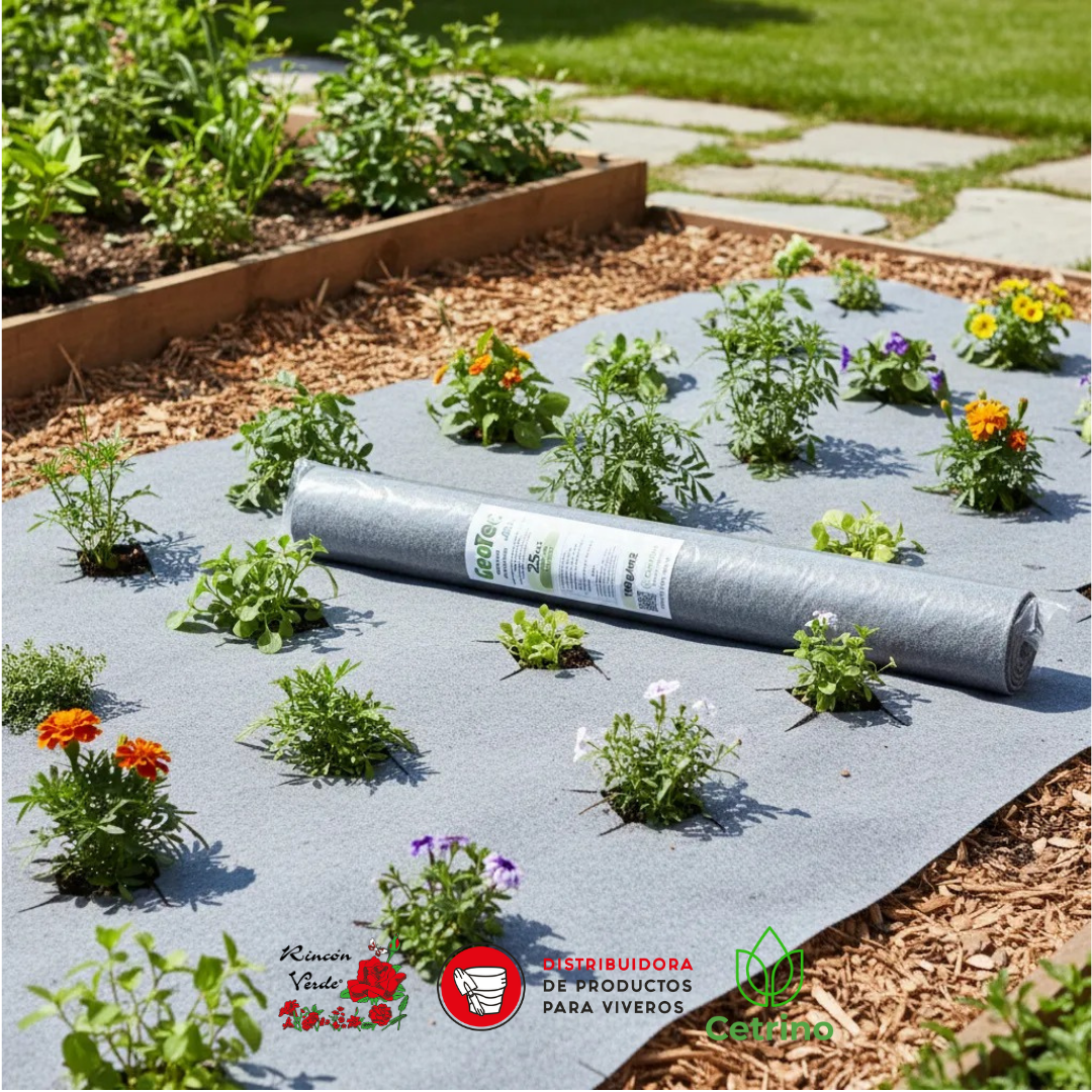 Geotxtil gris: ideal para el control natural de malezas, drenaje, estabilización de suelos, caminos, jardines y espacios verdes.