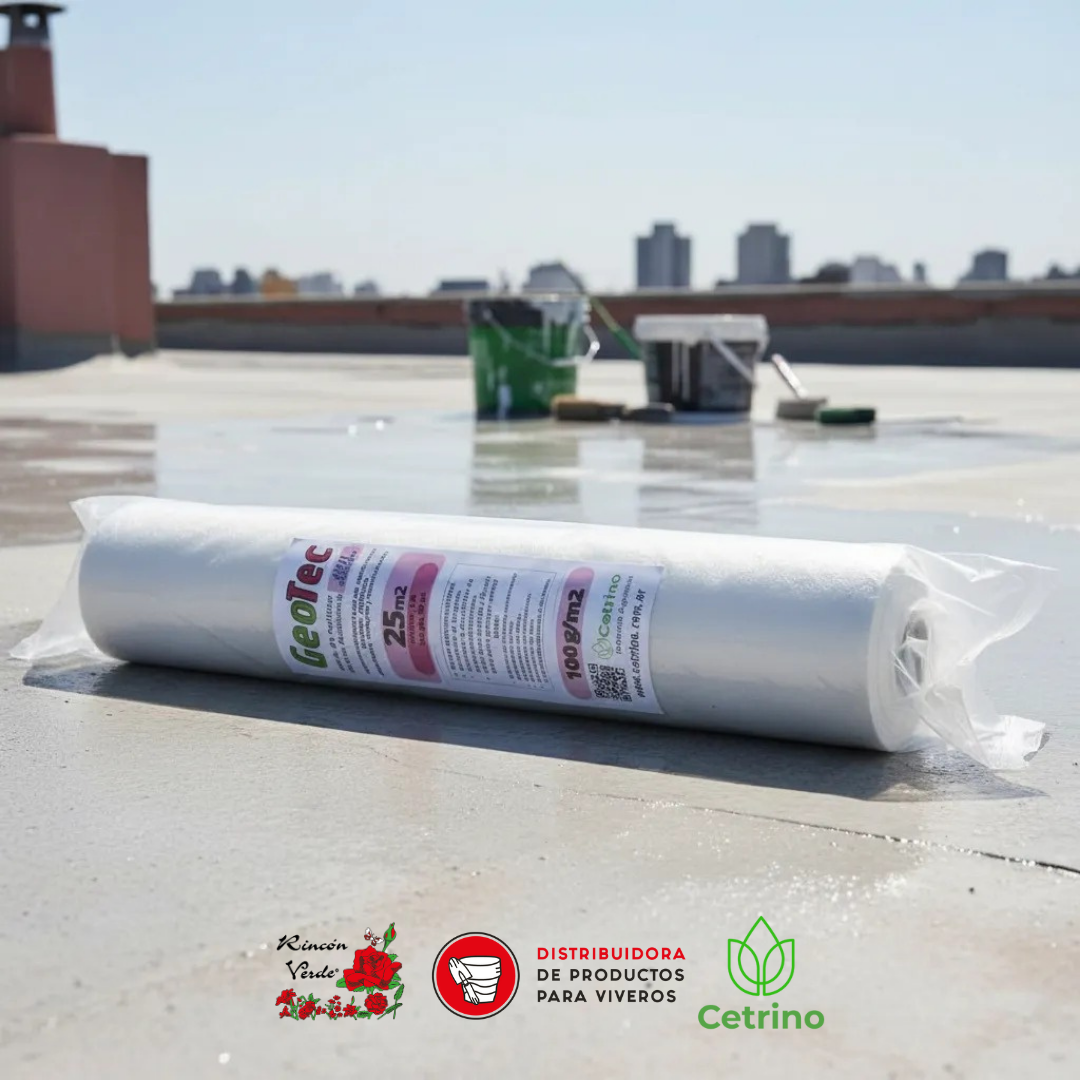 Geotextil blanca: ideal para trabajos en techos, losas y reparaciones. Impermeabilización, refuerzo de membranas líquidas, membranas cementicias, drenaje y filtrado.