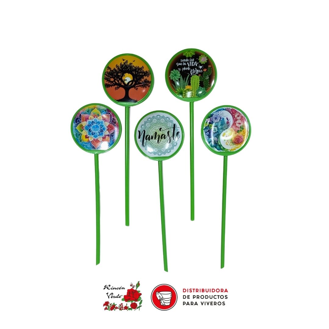 Tutor decorativo redondo, con imágenes impresas.
